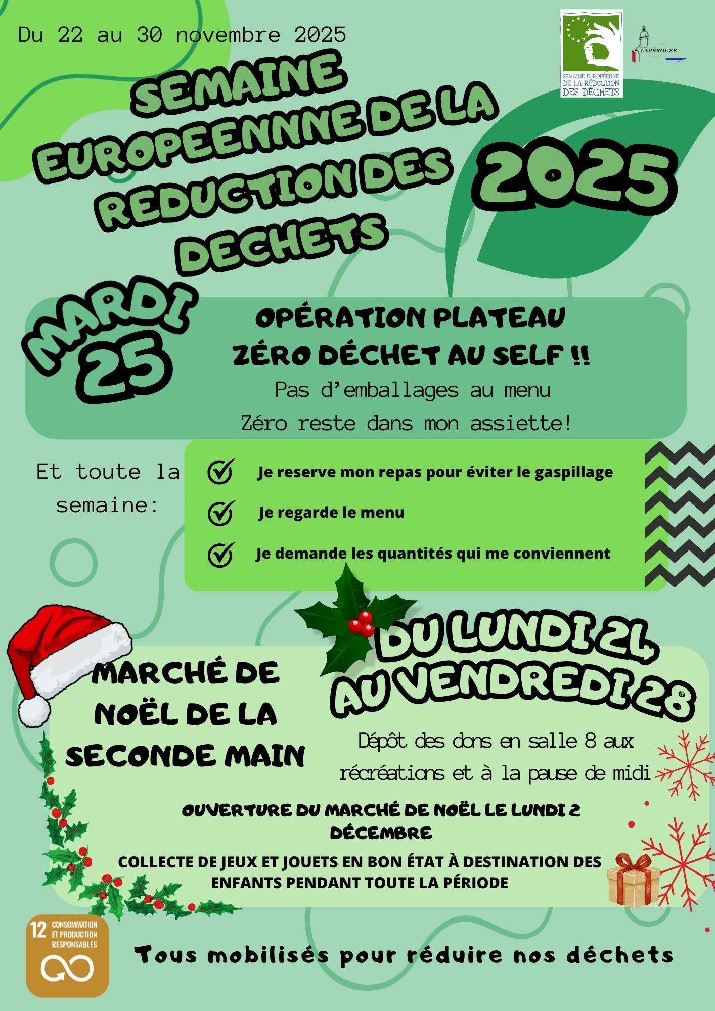 A l’occasion de la SERD 2025 (du 22 au 30 novembre 2025), les écodélégués du lycée Lapérouse organisent un événement écocitoyen intitulé le « Marché de Noël de la seconde main »